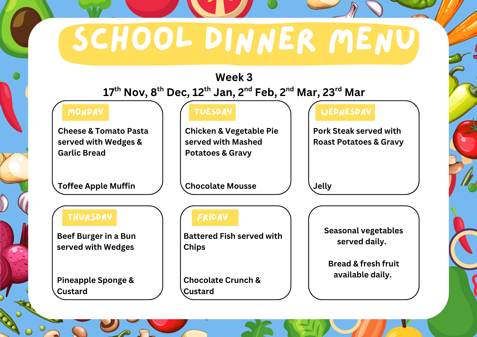 From September 2014 all children in Reception, Year 1 and Year 2 classes have been offered a “free” healthy school meal each lunchtime. Doncaster Schools Catering prepare the meals in our own kitchen. The menu for each week will be displayed in the notice cabinet on the top playground for your information. It is important that the school office be informed of any child with any allergy, intolerance or any medical diet so that the kitchen staff can provide the correct food for every child. This information must be supplied by a medical professional.