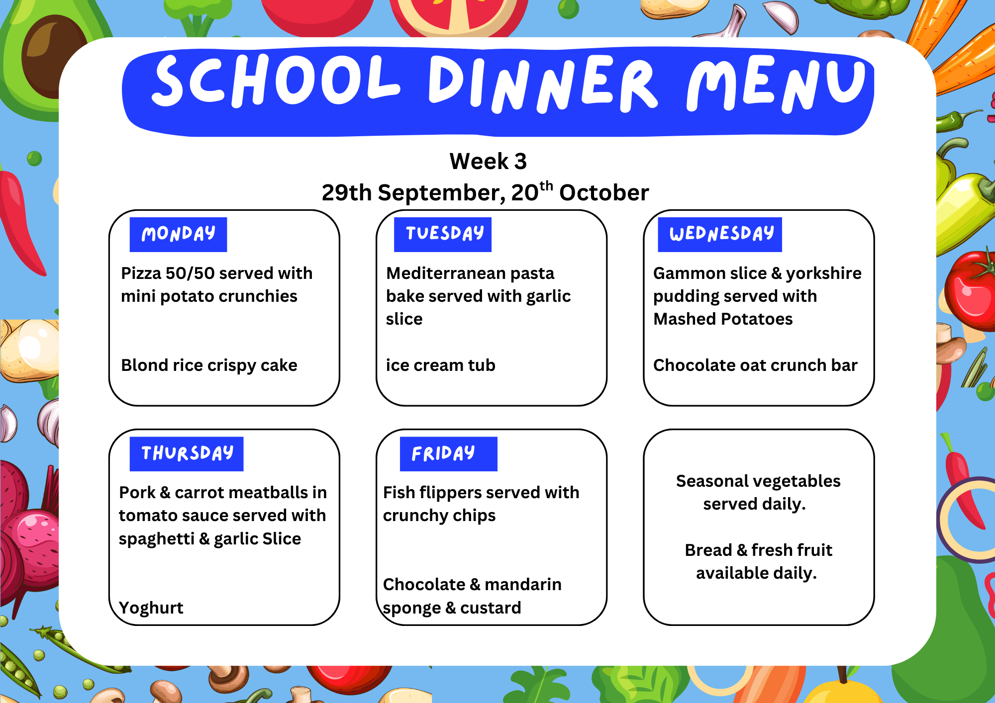 From September 2014 all children in Reception, Year 1 and Year 2 classes have been offered a “free” healthy school meal each lunchtime. Doncaster Schools Catering prepare the meals in our own kitchen. The menu for each week will be displayed on all entrance doors into school for your information. It is important that the school office be informed of any child with any allergy, intolerance or any medical diet so that the kitchen staff can provide the correct food for every child. This information must be supplied by a medical professional.